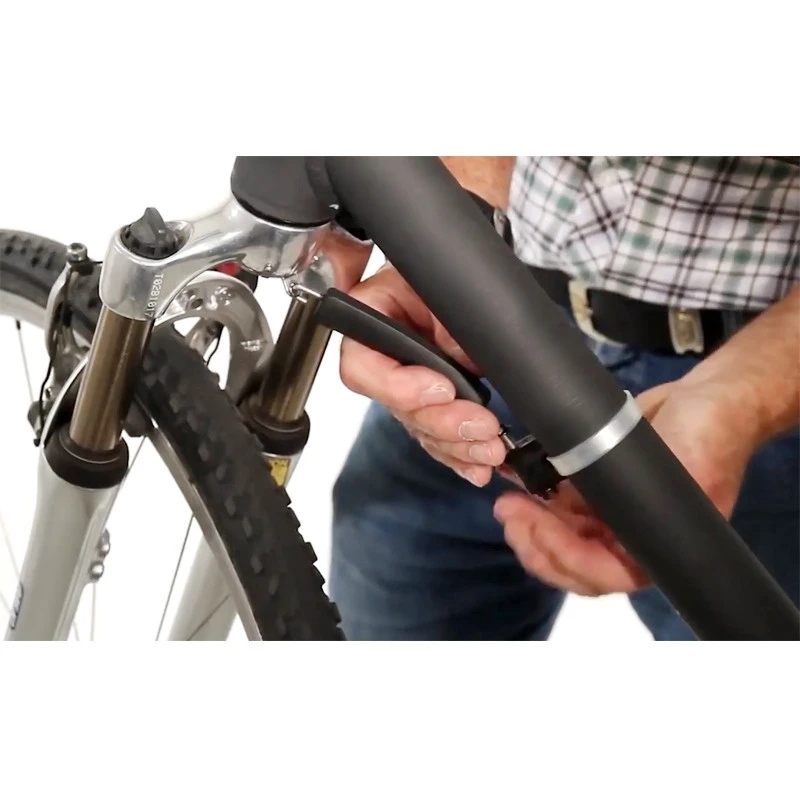 Le redresseur de guidon est constitué d’un ressort flexible permettant à la roue avant de conserver une position droite avec le cadre lorsque le vélo est à l’arrêt sur sa béquille à double pied.