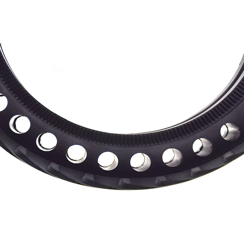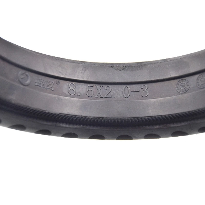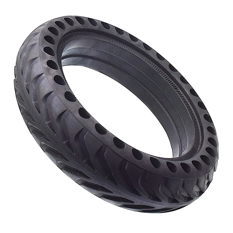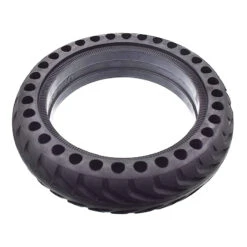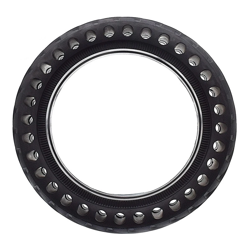 Ce pneu plein en caoutchouc noir dispose de 32 alvéoles qui permettent de réduire la dureté des routes. Un meilleur amorti, une adhérence sur les routes humides plus performante. Les alvéoles permettent aussi d’allégé les pneus pour éviter une trop grande perte de vitesse de la trottinette électrique Xiaomi M365.