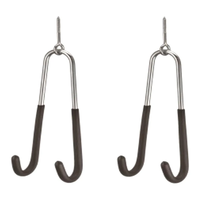 Facile à mettre en place grâce à deux chevilles à œillets, ces doubles crochets vendus par paire sont parfait pour la suspension des accessoires pour vélos, vélos et tout autres ustensiles nécessitant un rangement parfait et pour gagner de la place dans une cave, une buanderie, un garage ou un abris de jardin.