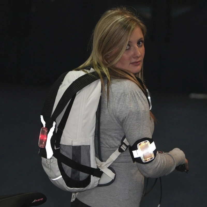 Fabriqué avec des LED ultra puissantes et un panneau solaire à haut rendement, les sangles de fixation du Baglite sont équipées d’une bande réfléchissante pour augmenter la visibilité de l’utilisateur.