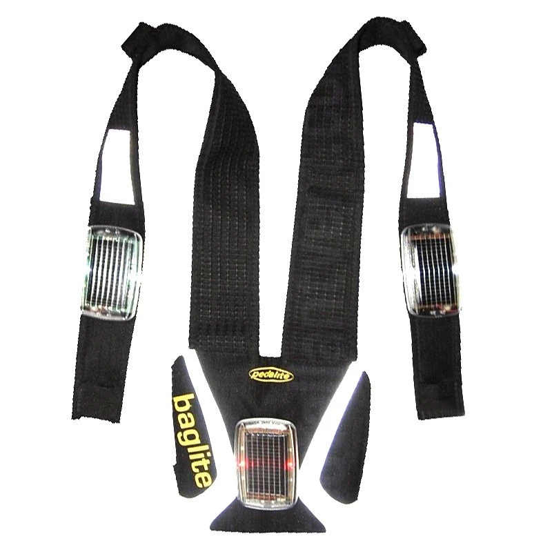 Avec une autonomie de 3 heures en mode clignotant avec une charge pleine, ce système d’éclairage dispose d’une LED rouge à l’arrière et 2 LED blanches fixées sur les bretelles de votre sac à dos, le baglite s’ajuste parfaitement à tout type de sac.