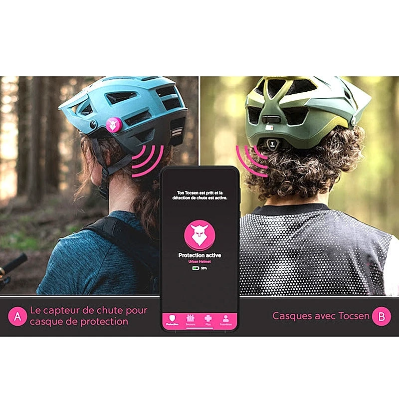 Le TOCSEN, produit 100% fabriqué en Allemagne, est un capteur de chute couplé a une application pour smartphone. Ce capteur détecte les chutes qui interviennent au cours de vos pratiques et appelle automatiquement à l’aide en cas d’urgence lorsque l’utilisateur lui-même n’est plus en mesure de le faire suite à une chute, un malaise à vélo, ski/snowboard ou cheval.
