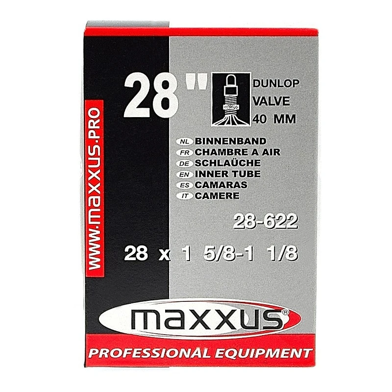 Chambre à air Maxxus 28×1 5/8×1 1/8 (700 x 28C) – Valve Dunlop 40 mm – Norme ETRTO : 28-622.