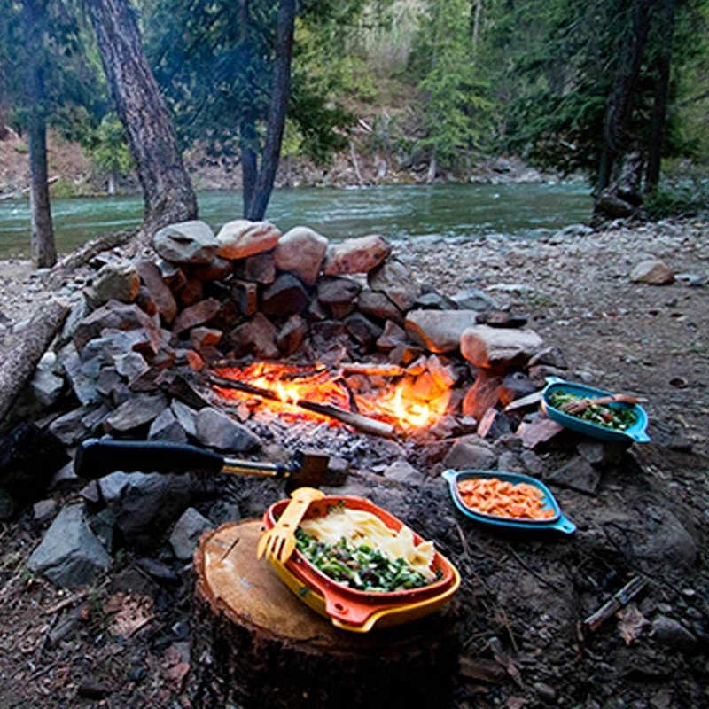 L’étanchéité est assurée par un joint double d’étanchéité et si besoin le couvercle peut servir d’une seconde assiette restant bien stable grâce au grip extérieur ! Un solution intelligente pour les baroudeurs qui transportent des vivres.