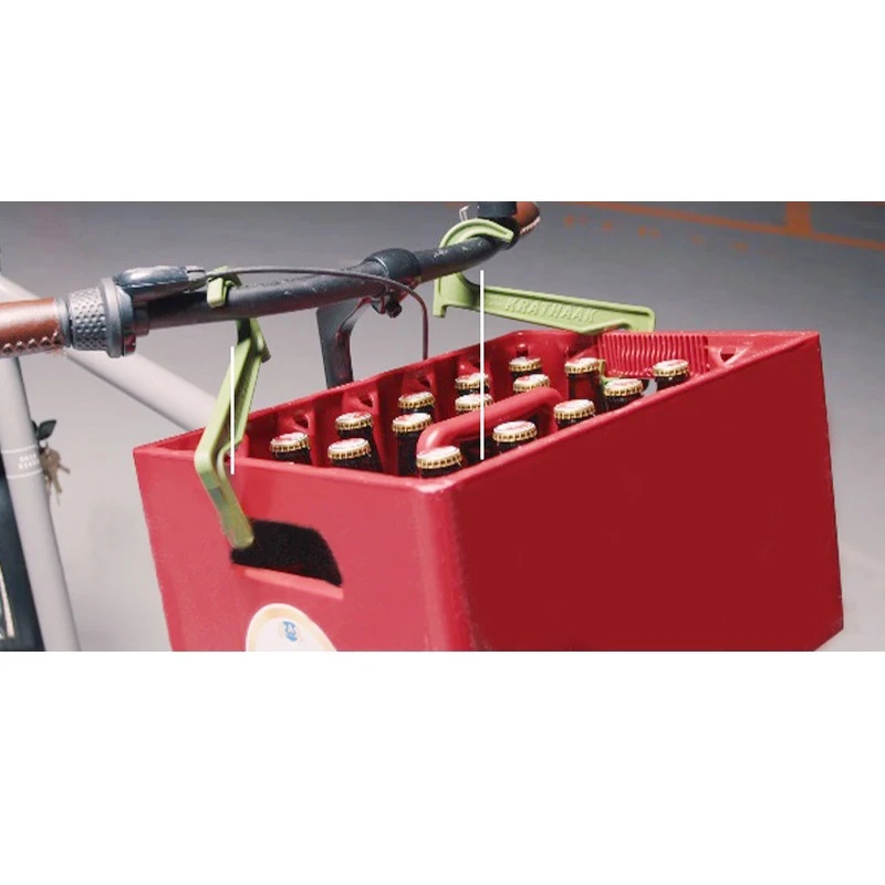 Plus besoin d’accrocher une caisse de bière avec des tendeurs sur votre vélo. Avec le système de portage Krathaak, transporter facilement non pas une mais jusqu’à trois caisses à la fois.