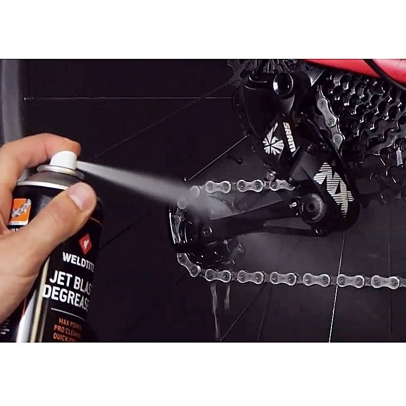 JET BLAST est conçu pour être utilisé sur les transmissions et comporte un puissant jet de pulvérisation pour souffler la saleté, la boue et la crasse des pièces en mouvement. Ainsi le retrait de la cassette ou de la chaîne n’est plus nécessaire pour obtenir une finition impeccable.