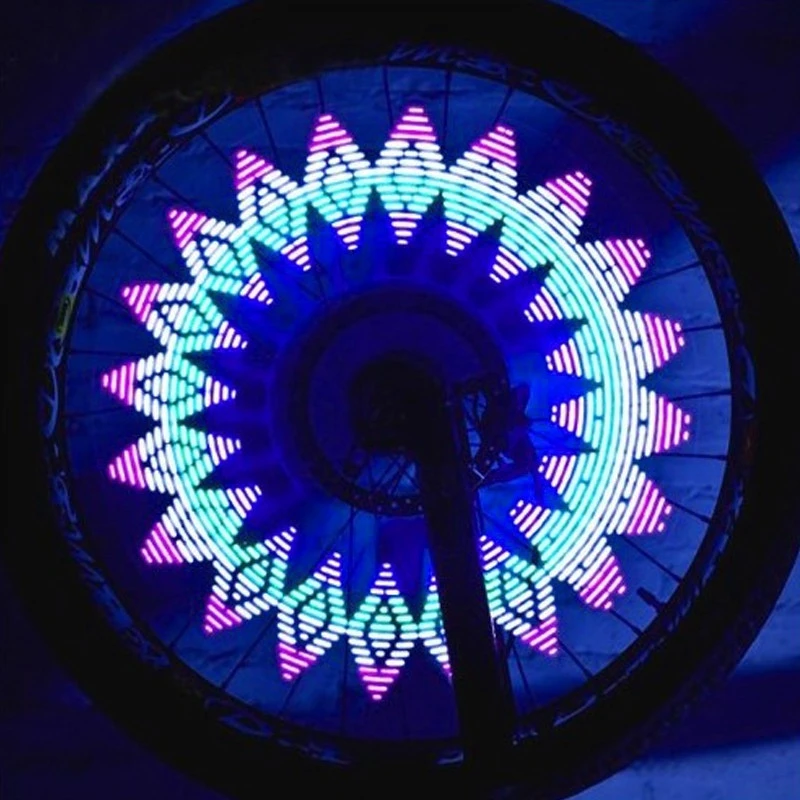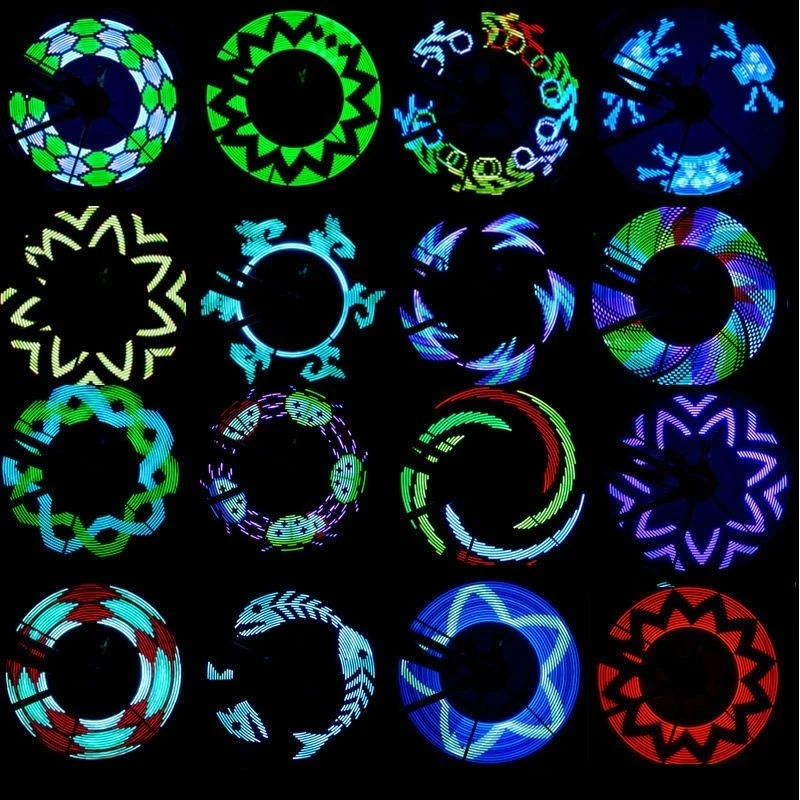 Conçu pour la sécurité des cyclistes, cet éclairage de roue 32 Leds haute luminosité disposent de 32 patterns de défilement pour les figures.