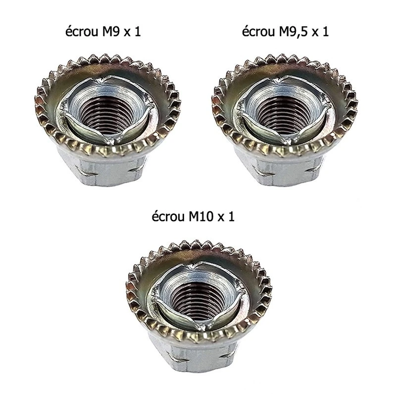 Ecrou avec rondelle crantée pour axe de roue de vélo