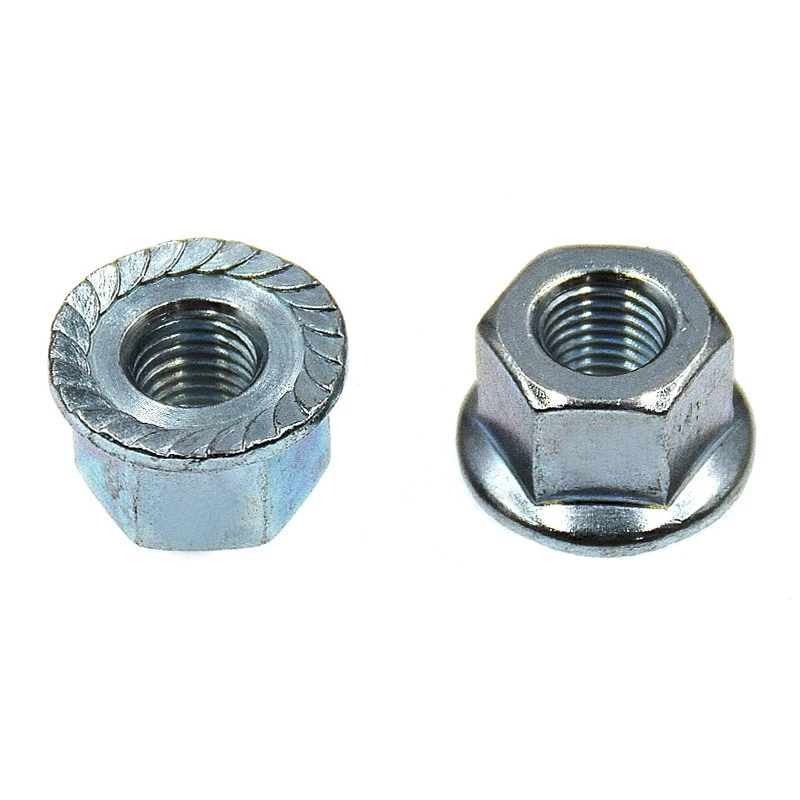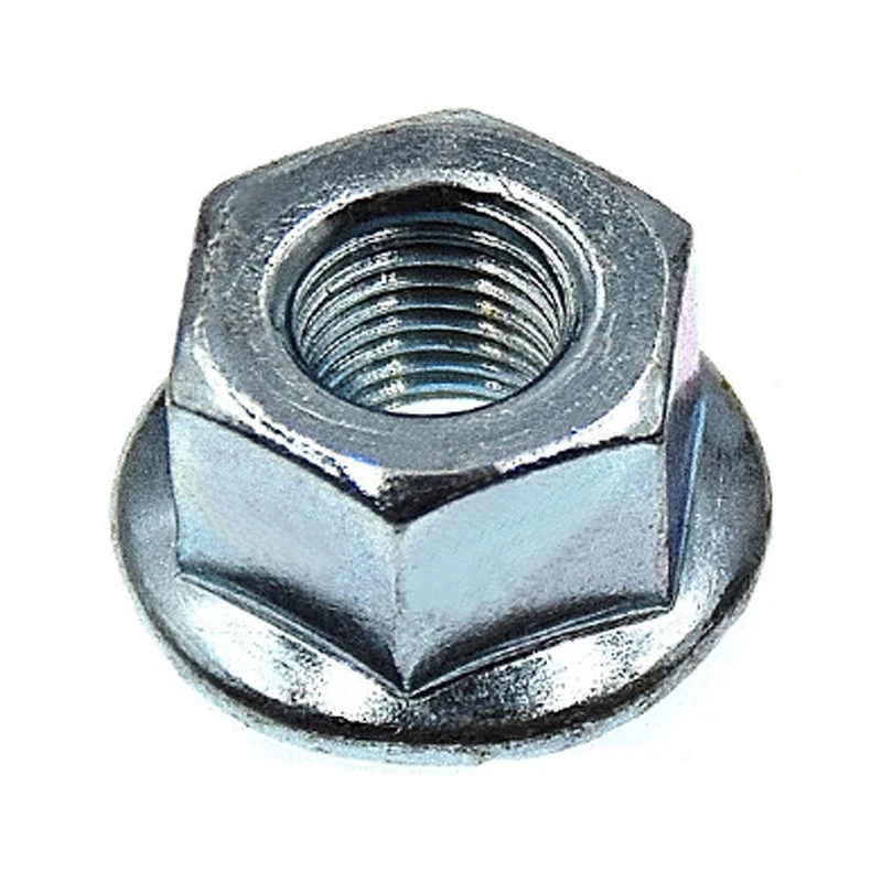 Ecrou à embase crantée pour axe de roue vélo.