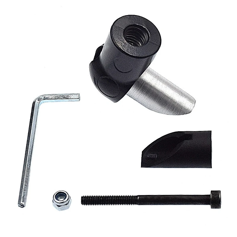 La fixation comprend 1 embout fendu, 1 longue vis avec écrou nylstop et 1 clé.