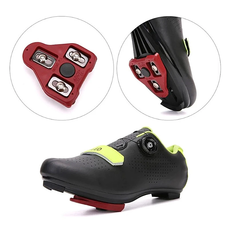Ces accessoires pour chaussures de cyclistes disponible avec dégagement angulaire de 0° (noir) ou 9° (rouge) permettent d’obtenir un bon maintien du pied sur la pédale afin d’affiner la position et la poussée du pied pour un meilleur pédalage.
