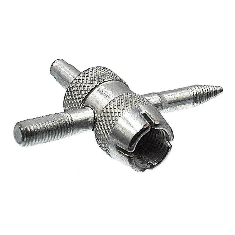 Démonter en toute simplicité l’obus présent dans la valve d’une chambre à air. Cet outil permet également de dégonfler rapidement un pneu ou d’installer facilement un prolongateur de valve.