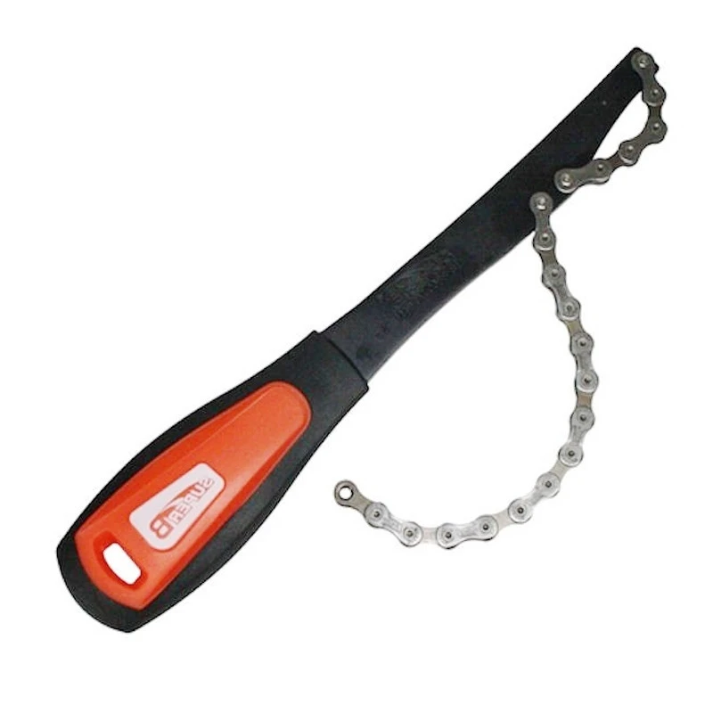 Le fouet à chaîne permet de bloquer vos pignons afin de démonter avec facilité votre cassette ou roue libre.Son manche revêtu de caoutchouc permet d’avoir l’outil bien en main et qu’il ne glisse pas lors du montage ou démontage de votre cassette ou roue libre.