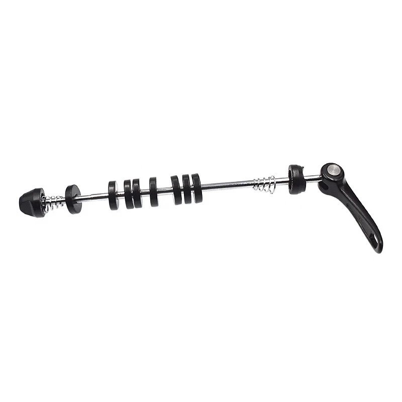 Certains vélos ne disposent pas d’oeillet de fixation pour permettre le montage d’un porte-bagages. Cet axe rapide en acier inoxydable avec adaptateurs en aluminium de 8 x 5 mm auutorise le remplacement de votre axe à serrage rapide d’origine présent sur votre vélo tout en donnant la possibilité d’obtenir un montage rapide sans géner le déplacement de la chaine ou le dérailleur lors son l’installation.