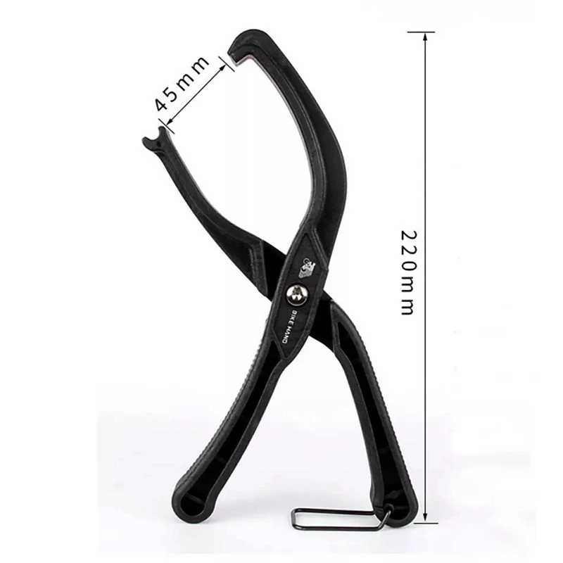 Cette outil utile en forme de pince facilite l’entretien périodique pendant le montage des pneus sur les jantes acier, aluminium ou carbone.