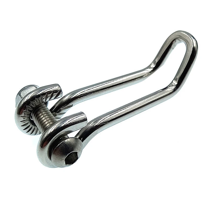 Cette fixation en acier inoxydable permet d’installer un feu avant sur la fourche du vélo. cette patte robuste est fournie avec une vis inoxydable, un écrou frein, et deux rondelles inoxydables pour le montage du phare sur le support.
