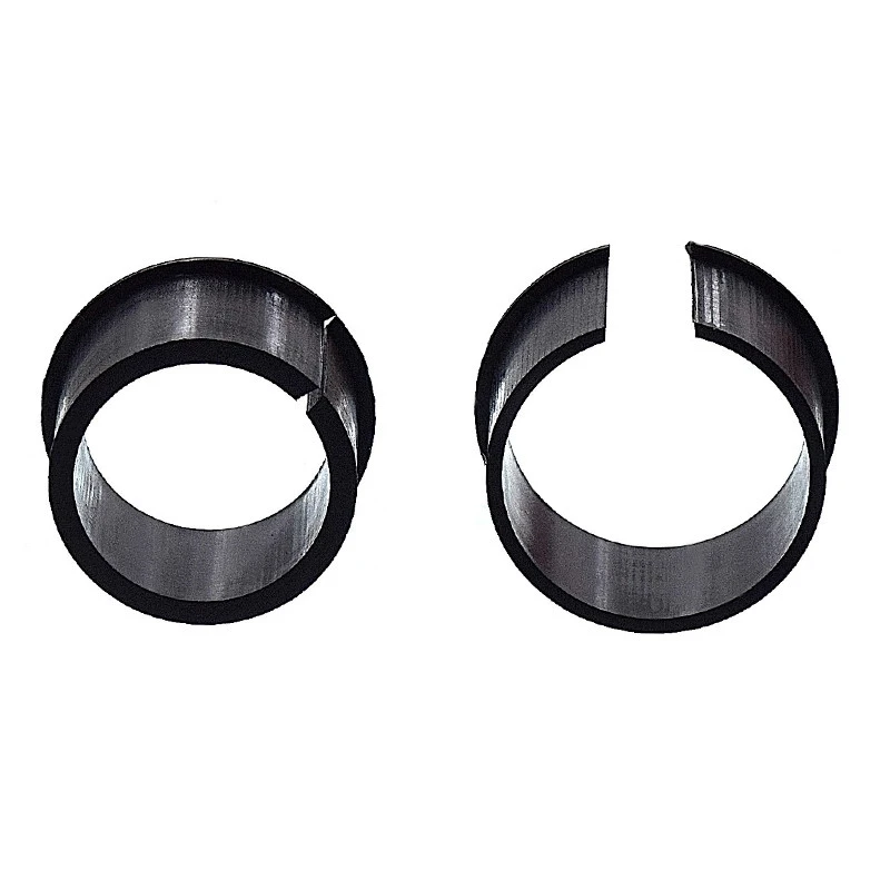 Ces bagues en plastique noires permettent d’adapter le diamètre du tube de selle pour y monter l’attache pour remorque de vélo sur tige de selle.