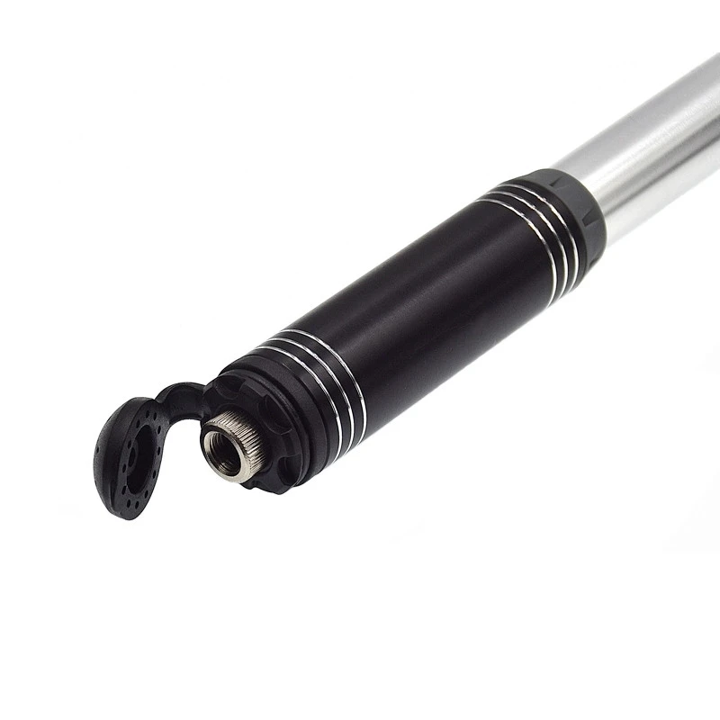 Cette pompe en aluminium pour valves presta et Schrader se déplie pour doubler le volume d’air afin de gonfler plus rapidement les chambres à air et pneumatiques jusqu’à une pression de 8 bars.