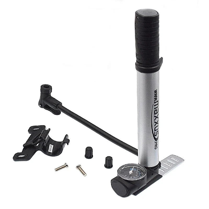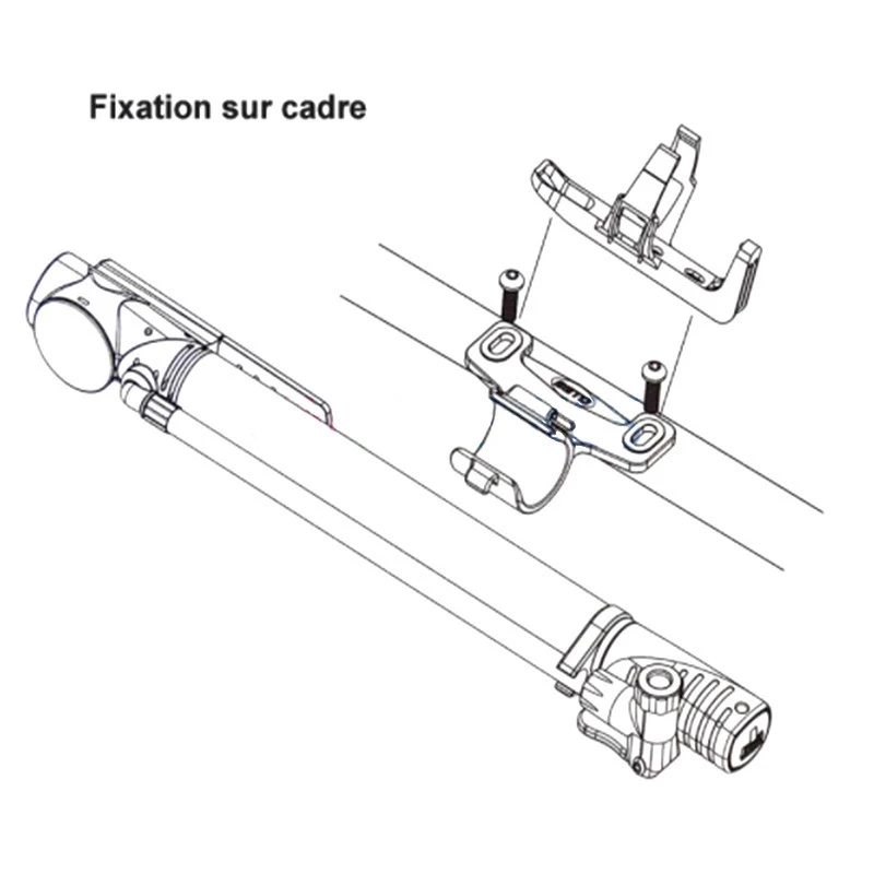 Cette pompe pour cycliste, ne mesure que 24 cm de long et 11 cm de large quand elle est pliée. La fixation avec 2 vis pour attacher la pompe au cadre du vélo est incluse.