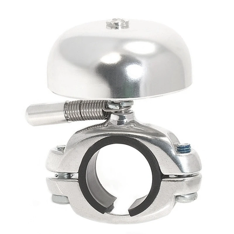 Cette sonnette vélo argent au look ancien permet aux cyclistes de se faire entendre par les autres usagers des voies routières, pistes cyclables et dans les endoirts ou la sécurité est de mise.