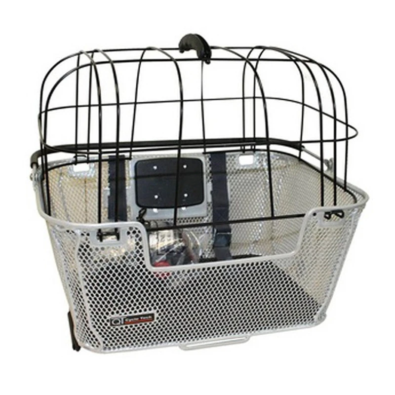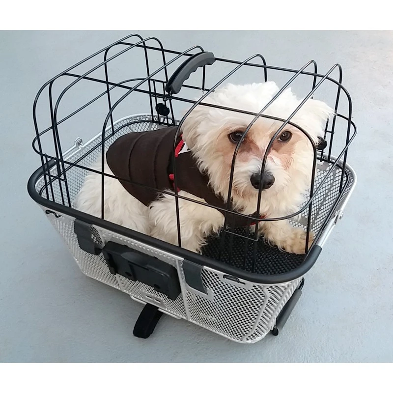 Panier pour guidon et porte-bagage avec couvercle cage démontable sur la partie supérieur pour le transport de petits animaux tel que chiens, chats, rongeurs …. La fixation peut s’articuler afin de mettre le panier bien à l’horizontal ou avec un angle différent.
