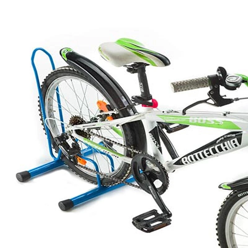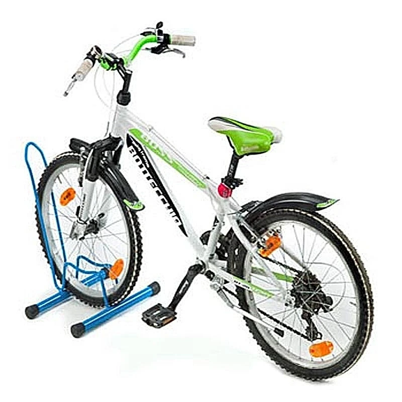 Ce range-vélo à poser au sol de coloris bleu permet un bon maintien du vélo en stationnement par la roue avant ou arrière. Il accepte une installation sur roue jusqu’à 28 pouces et un pneu mesurant jusqu’à 49 mm de large.