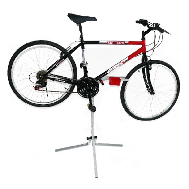 Ce stand de réparation vélo dispose de 3 pieds et d’une sangle pour accrocher le vélo sur la structure pour un bon maintien.