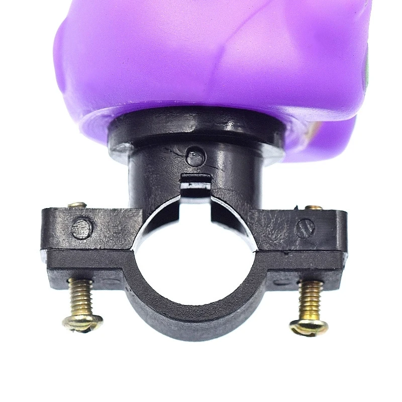 Ce jolie klaxon pouet pouet petite souris se fixe avec un collier plastique sur le guidon du vélo enfant au moyen de 2 vis de fixation.