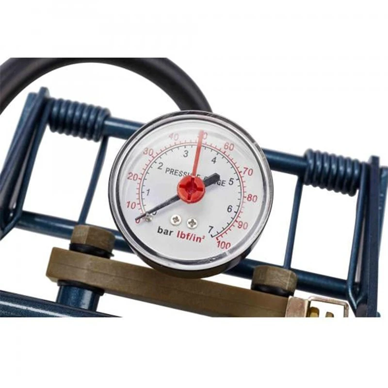 La pompe dispose un double cylindre permettant d’obtenir une haute-pression, d’un manomètre pour une lecture précise et d’un tuyau flexible pour une pression maximale de 5 bars.