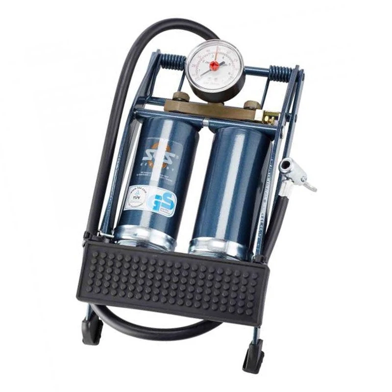 La pompe à pédale SKS GERMANY Twin Air est un modèle robuste permettant de gonfler les pneus de vélo ainsi que els matelas pneumatique et ballon grâce à ses adaptateurs fournis.