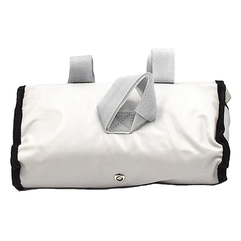 Utilisable en quelques secondes, le poncho de couleur gris dispose d’une capuche avec serrage par cordelettes, l’ensemble se trouve replié dans une sacoche venant se fixer sur le guidon compatible avec la majorité des vélos de route.