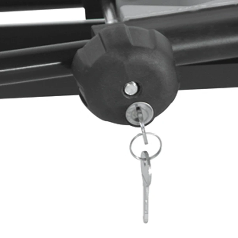 Ce système de fixation de 2.6 kg est verrouillable par une serrure à clé pour une sécurisation optimale du vélo.