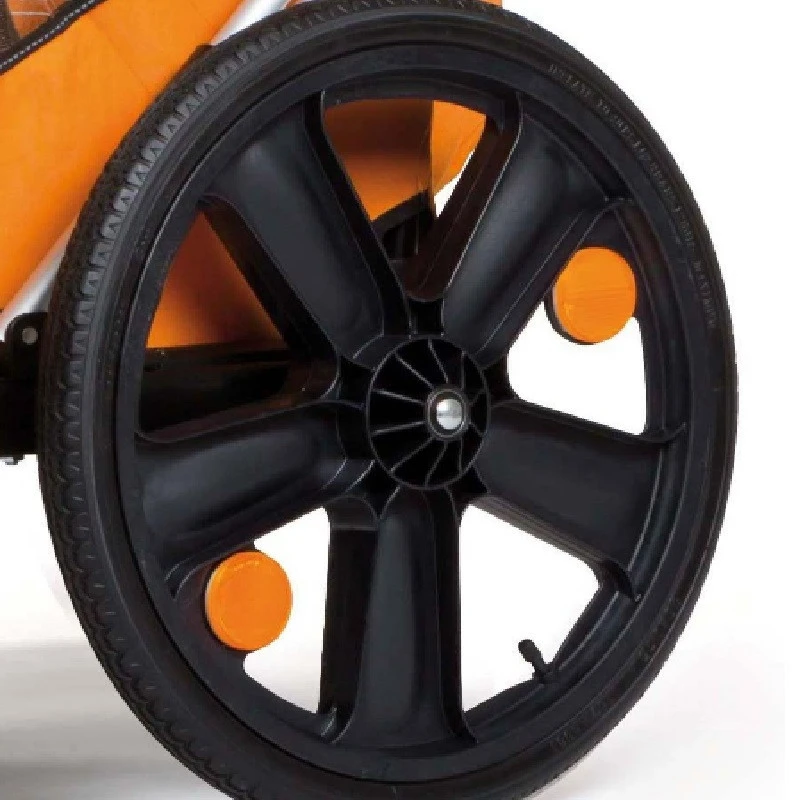 - Roues 20 pouces amovibles avec raccords rapides se positionnant à l’intérieur du châssis pour faciliter le rangement de la remorque dans le coffre d’une voiture