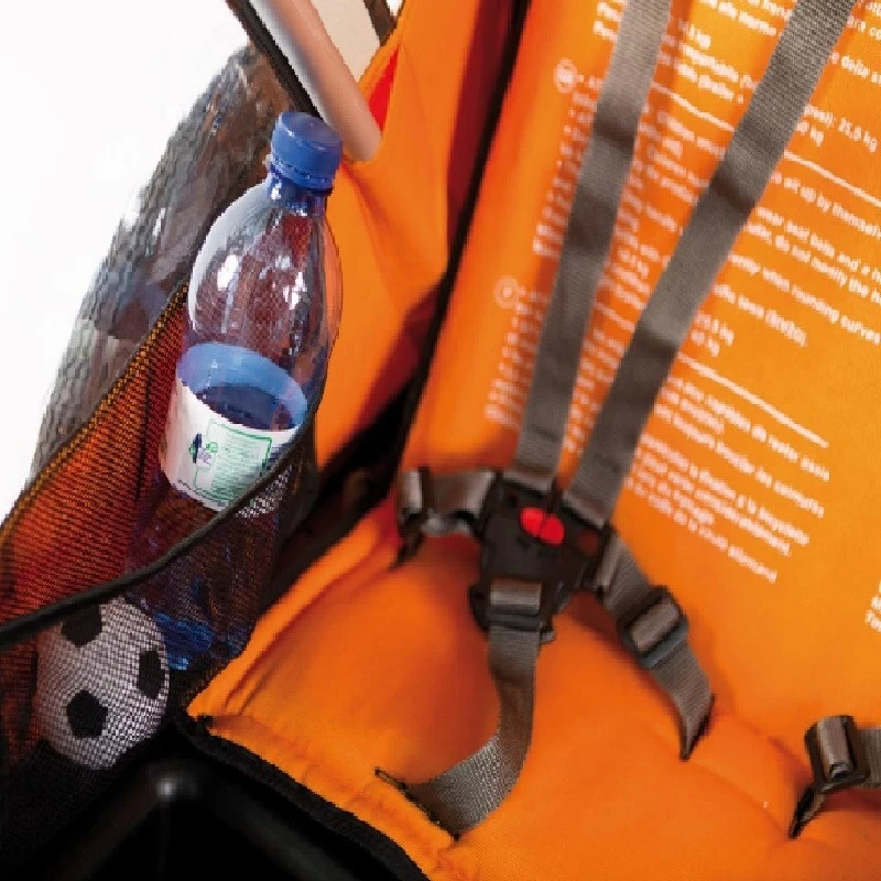 - Harnais 5 points pour attacher et sécuriser un ou deux enfants (stature 1,10 m ou 25,5 kg max.)
