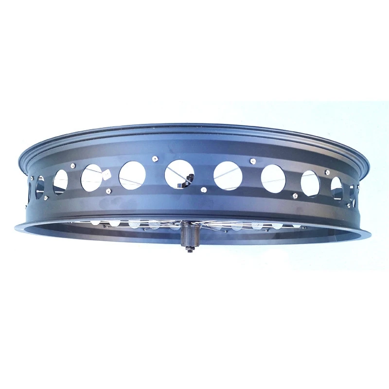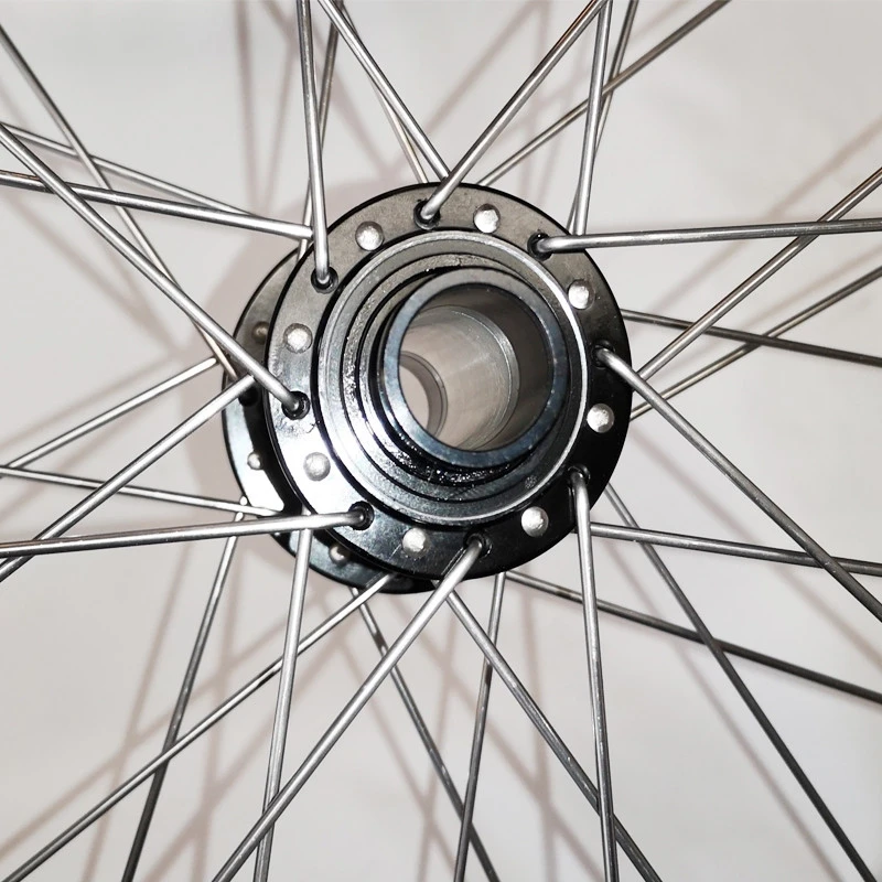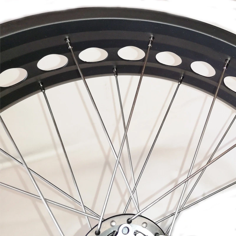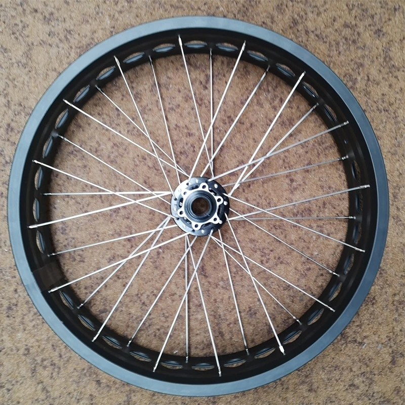 Fabriqué en aluminiun avec rayons en inox et moyeu supportant un frein à disque à 6 trous.