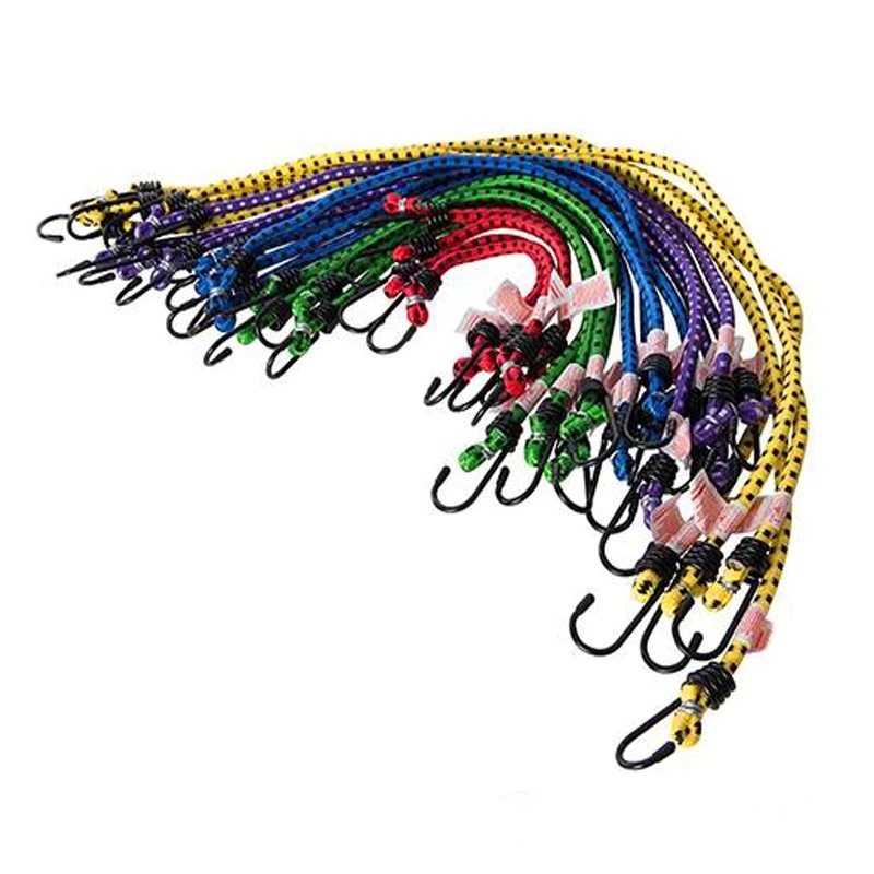 Cordons élastique extensibles et robustes tressés en polypropylène ultrarésistant pourvus de deux crochets en métal recouvert de caoutchouc. Parfaits pour maintenir en toute sécurité des objets sur le porte bagage ou la remorque d’un vélo mais aussi sur un scooter, une moto, une voiture et pour une multitude d’autres applications autour de la maison, du jardin, du garage ou encore de l’atelier.