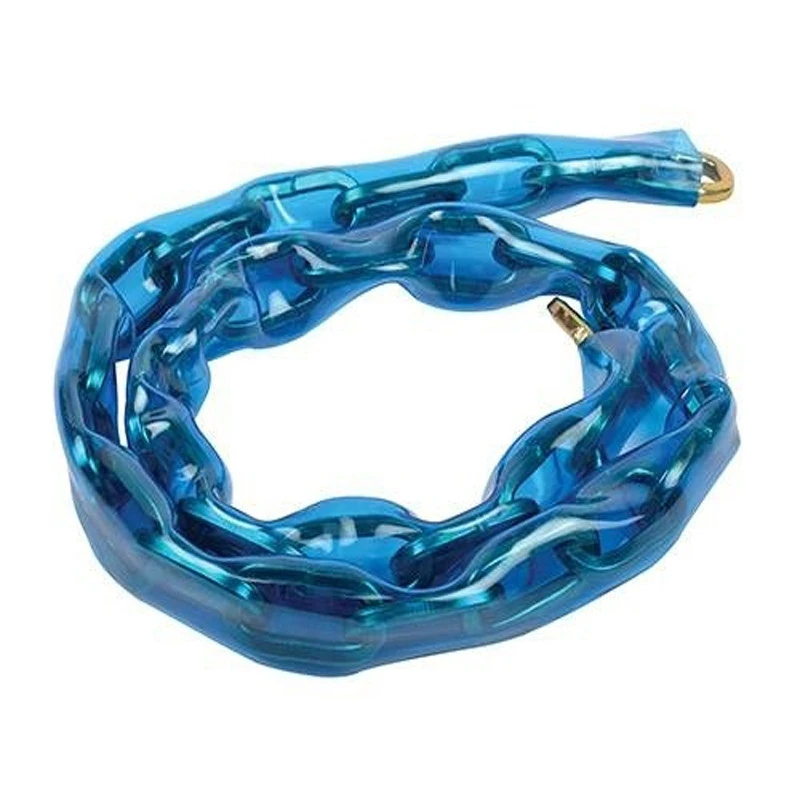 Maillons en acier trempé extrêmement résistant. Gaine PVC résistante aux intempéries. Dimensions des maillons (internes 16 mm x 38 mm) pour utilisation avec des cadenas à grandes anses.