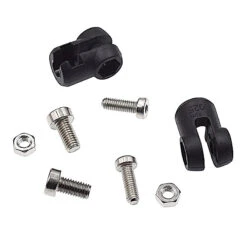 Ces brides en plastique et caoutchouc avec vis cruciforme permettent de fixer facilement et simplement les jambes de force des garde-boue aux fourches de suspension sur vélos urbains et électriques disposant d’un diamètre de tube de 26,5 à 31 mm .