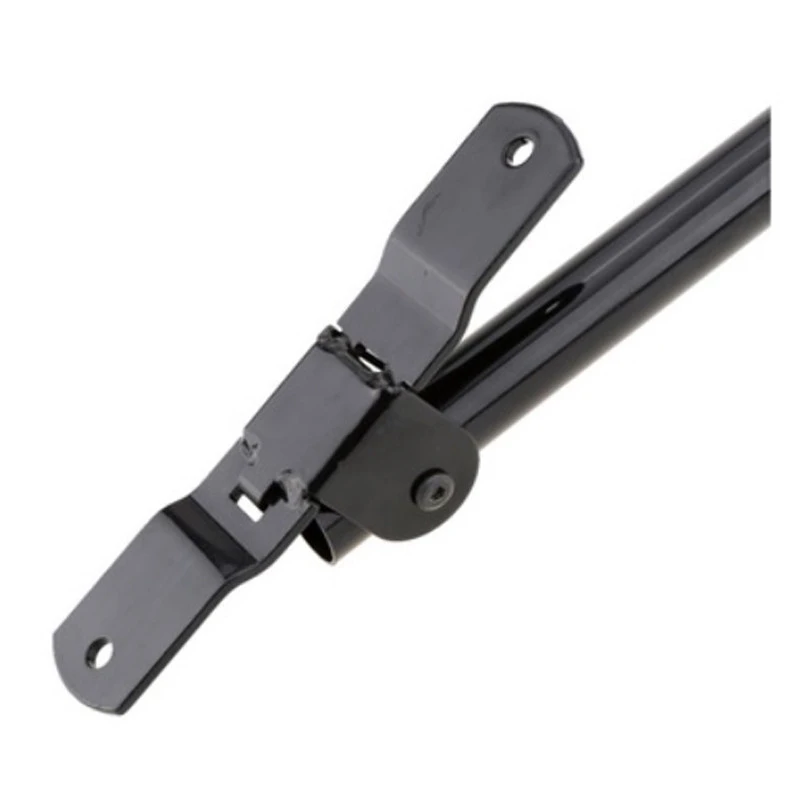 La structure est en acier peint en noir avec bras repliable à 180° et double crochet gainé pour supporté un VTT par la barre centrale du cadre sans le raillé.