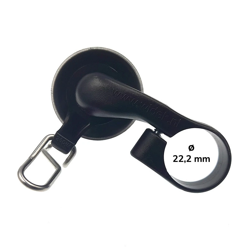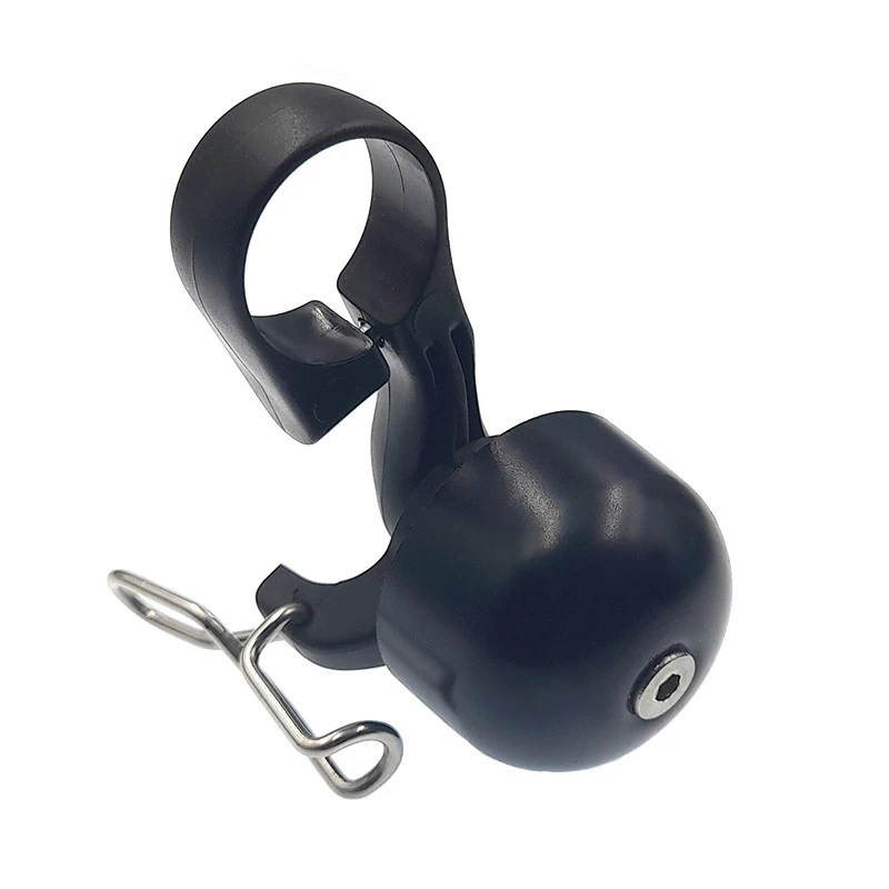 la sonnette vélo électrique Widek se positionne sur le côté gauche du guidon du VAE au moyen d’un collier de serrage sur un cintre d’un diamètre de 22,2 mm.